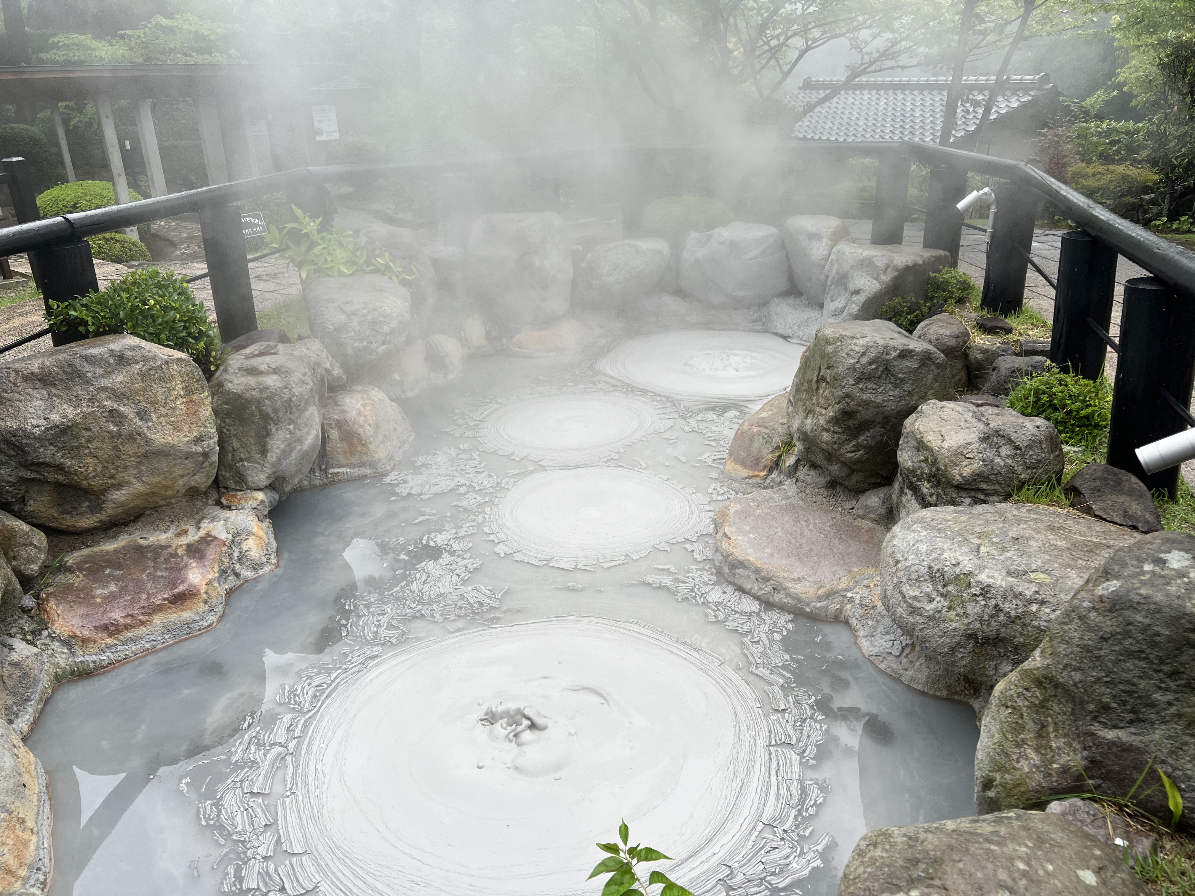 - Tatsumaki Jigoku (Inferno del Geyser): Un geyser che erutta ad intervalli regolari, offrendo un bello spettacolo naturale. I getti d’acqua si ripetono ogni 30… 40 minuti e durano circa 10 minuti. Se il getto fosse lasciato libero di vincere la forza di gravità liberamente raggiungerebbe altezze dell’ordine dei 50 metri. Purtroppo per motivi di sicurezza proprio sul getto del geyger è stato posto un disco di pietra che limita l’altezza del getto e, onestamente, toglie tutto il fascino di questo inferno. Nulla che vedere con quando apprezzabile in Islanda, per esempio.