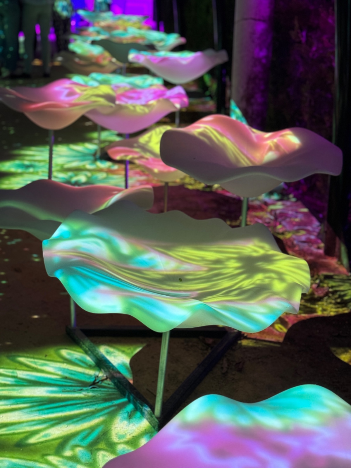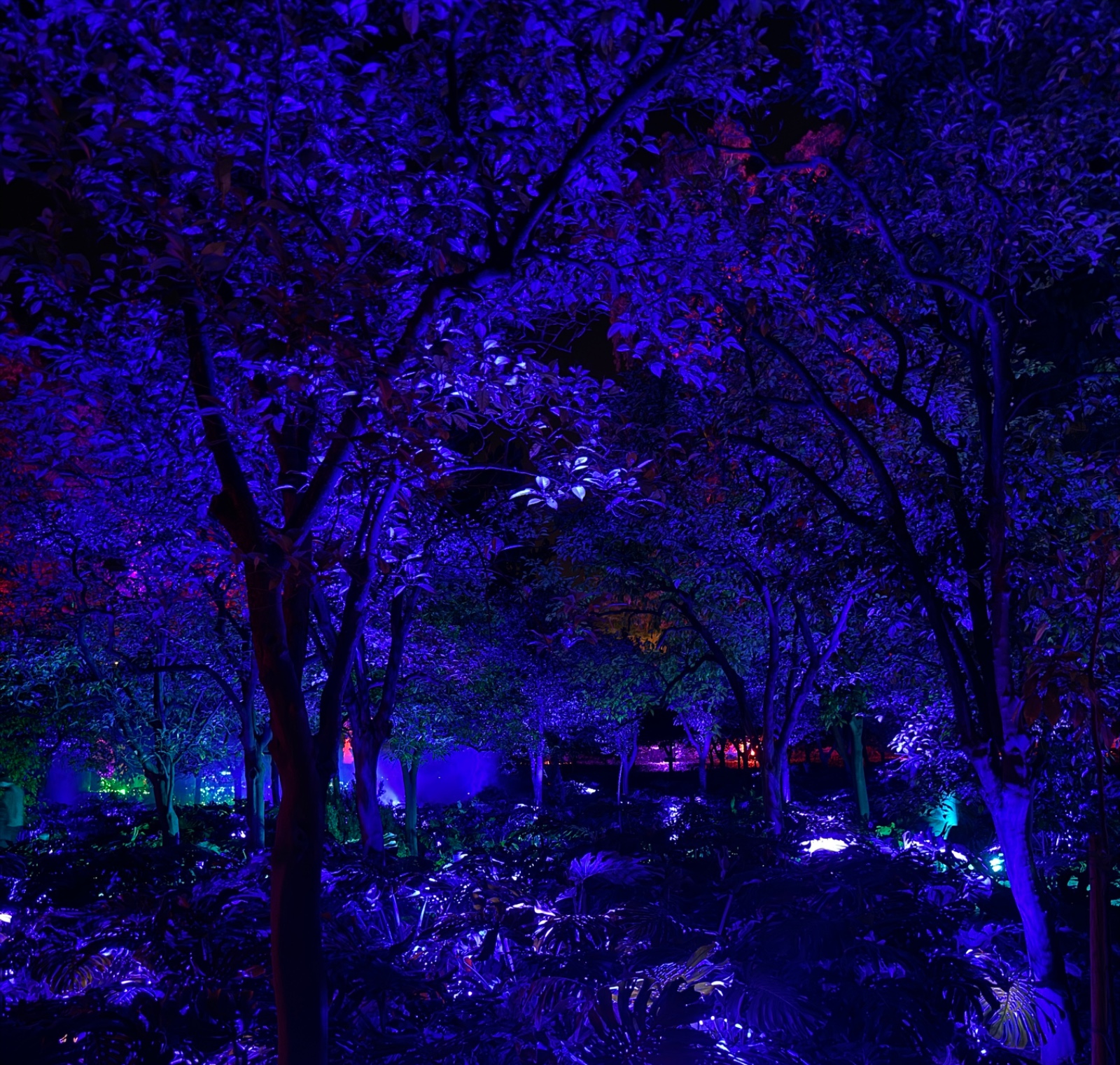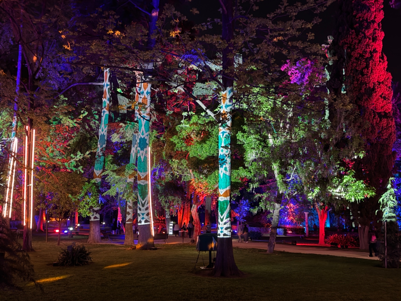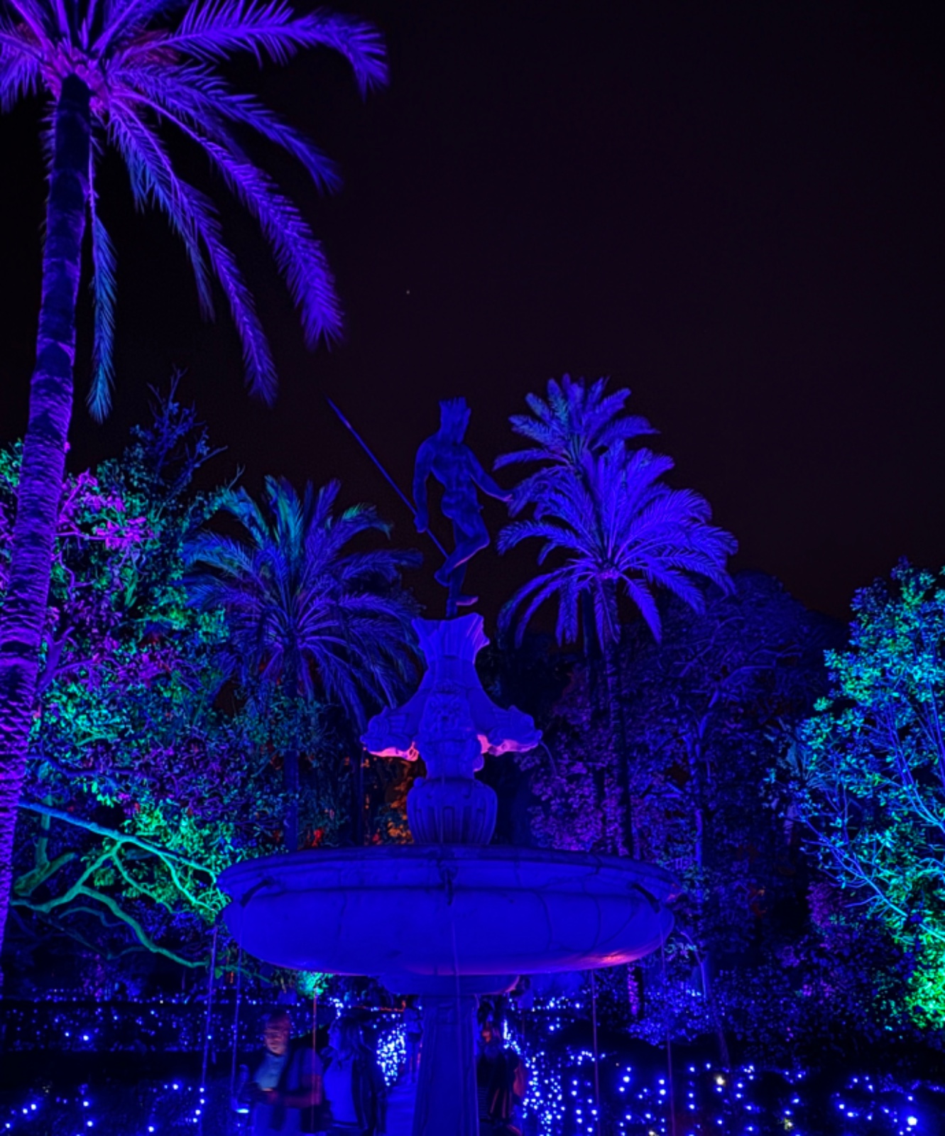 La passeggiata notturna offre la possibilità, grazie a migliaia di luci colorate, suoni, musiche e proiezioni, di apprezzare meglio le diverse influenze culturali che hanno lasciato il segno in questo angolo di paradiso. I colori delle luci ridefiniscono ed esaltano le varie specie di piante che, arrivate dal nuovo mondo nel XVI e XVII secolo, qui sono state impiantate per la prima volta in Europa dai botanici spagnoli per sperimentarne le qualità, attitudini e resistenza. I suoni vibrano nell’aria e conducono i visitatori attraverso le vaste aree del parco, fra le suggestive architetture moresche e gli edifici rinascimentali e romantiche le cui linee si fondono con la vegetazione. I cipressi sembrano prendere vita grazie alle proiezioni di figure geometriche cangianti e le mura che un tempo difendevano l’area si riempiono di ologrammi di fauna marina con delfini, balene, tartarughe e pesci che volteggiano elegantemente.