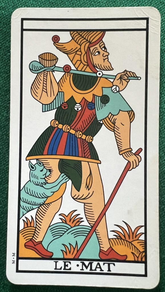 Analizzati nel loro complesso, i tarocchi sono indubbiamente un vero e proprio linguaggio visivo, un sistema articolato che riflette la complessità della vita stessa. Ogni carta del mazzo è un frammento di questo linguaggio; è un piccolo universo, un microcosmo che racchiude in sé una molteplicità di simboli. I colori, i personaggi, gli oggetti rappresentati: tutto in una carta è carico di significati profondi. Ad esempio, l’arcano maggiore del “Matto”, con la sua figura che cammina verso l’ignoto con un sacchetto sulla spalla e un cane al seguito, evoca il concetto di inizio, di viaggio, di apertura al nuovo e al rischio. Il sole che in alcuni mazzi di tarocchi splende sopra di lui può rappresentare l’energia vitale e la speranza, mentre il burrone vicino ai suoi piedi suggerisce il pericolo e l’incertezza.