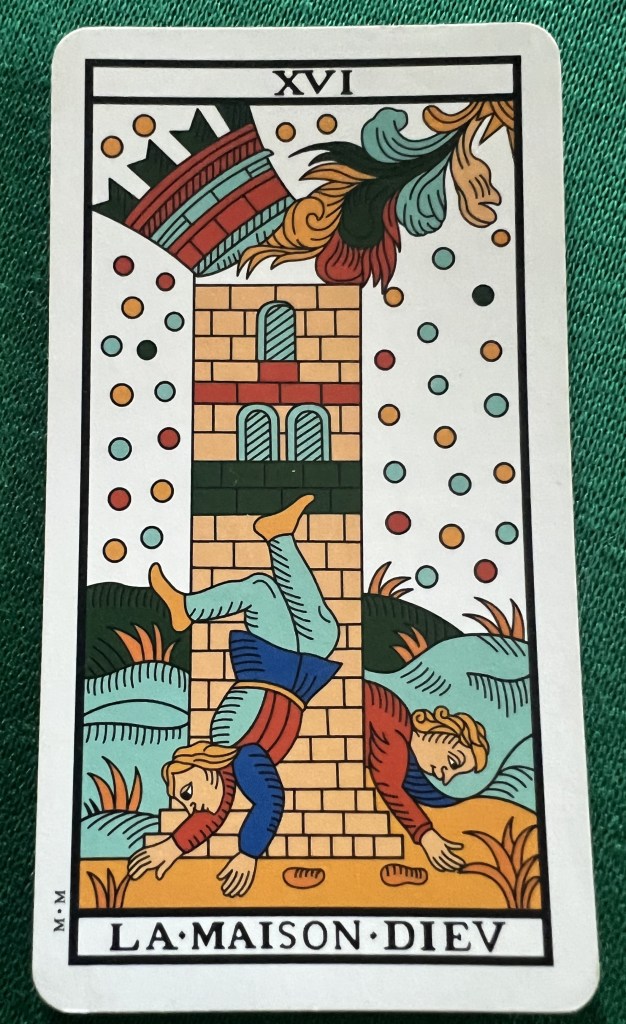 Immaginiamo di estrarre la “Torre”. Da sola questa carta rappresenta genericamente crolli improvvisi, cambiamenti drastici e distruzione di strutture vecchie o inadeguate. In una lettura singola, potremmo interpretarla come un avvertimento di un’imminente crisi o rottura.