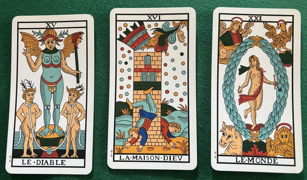 Ciò su cui intendo soffermarmi oggi, tuttavia, è analizzare come la lettura può cambiare radicalmente a seconda che si utilizzi una singola carta o ci si affidi ad un metodo più articolato che consideri anche le carte che precedono e seguono la prima carta estratta. Come avviene nei sogni o in altre discipline che esplorano la psiche umana, infatti, il vero potere dei tarocchi si rivela solo quando le carte vengono interpretate in relazione tra di loro.