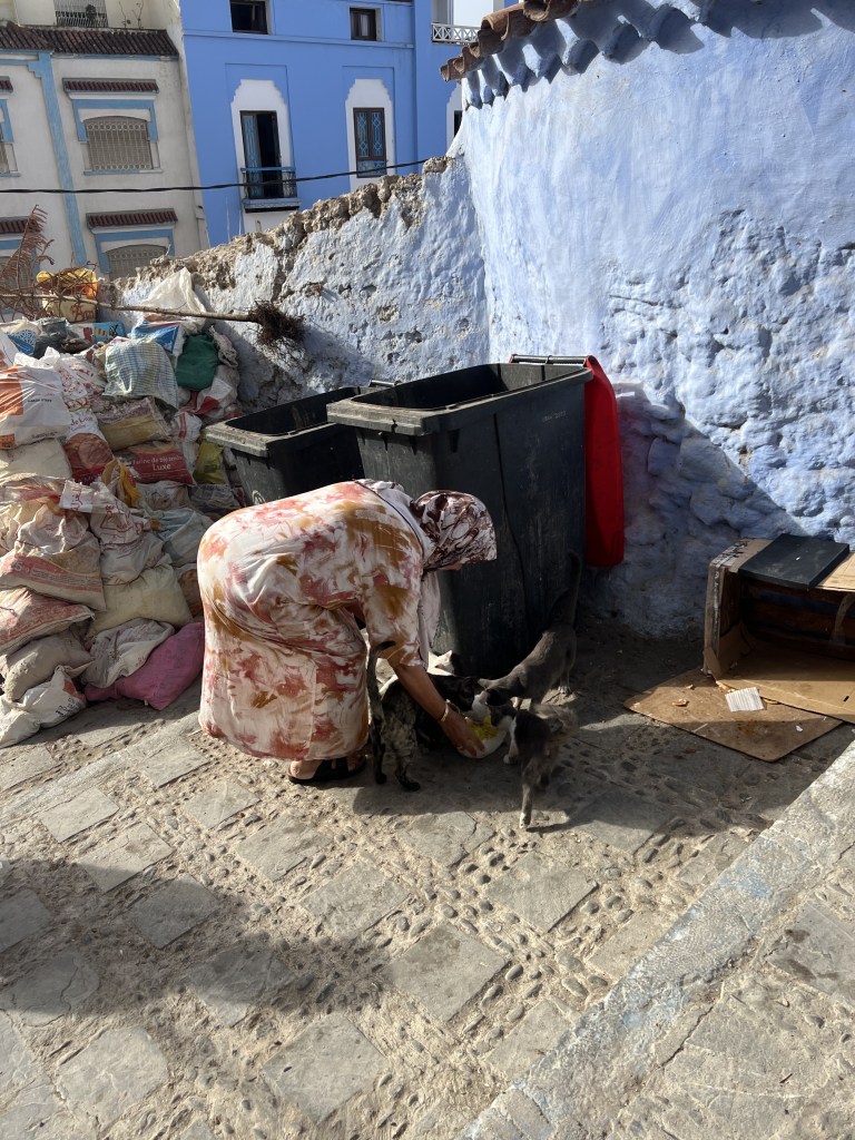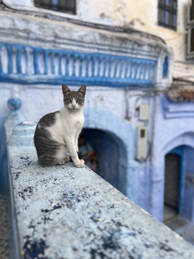 E poi, ci sono i veri padroni di Chefchaouen: i gatti! Sono dappertutto e, sorpresa, sembrano perfettamente integrati nel paesaggio. Li trovate accoccolati sugli scalini azzurri, con uno sguardo che sembra dire: “Sì, lo so che sono fotogenico, fai pure la tua foto e poi lasciami sonnecchiare in pace”. Personalmente non ho ancora visto un gatto dipinto di blu, ma non mi sorprenderebbe se, da qualche parte, ne esistesse uno.