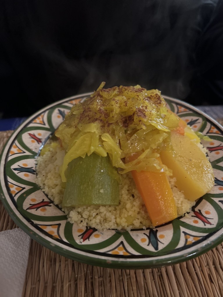 Dopo tutto questo girovagare (e fotografare compulsivamente), la fame si farà sentire senza ombra di dubbio. E Chefchaouen non delude! Qui potete gustare piatti marocchini tradizionali, come il tajine e il cous cous, ma con quel tocco in più di montagna: formaggi locali e miele del Rif. Sì, avete letto bene, formaggi! Non sono proprio la prima cosa a cui si pensa quando immaginiamo il Marocco, ma fidatevi, sono deliziosi. E il pane appena sfornato? Non ha rivali. Se riuscite a trovare una terrazza con vista sui tetti blu della città, allora avete raggiunto il Nirvana dei viaggiatori.