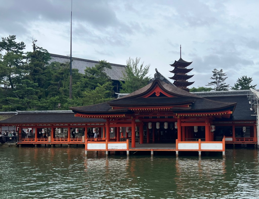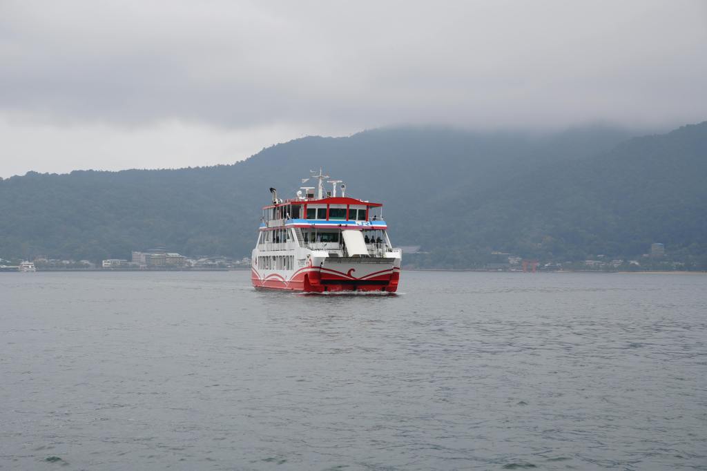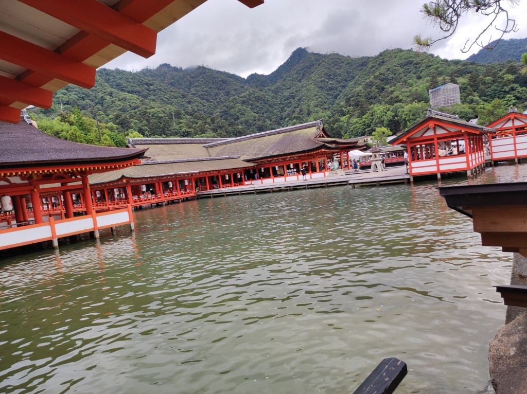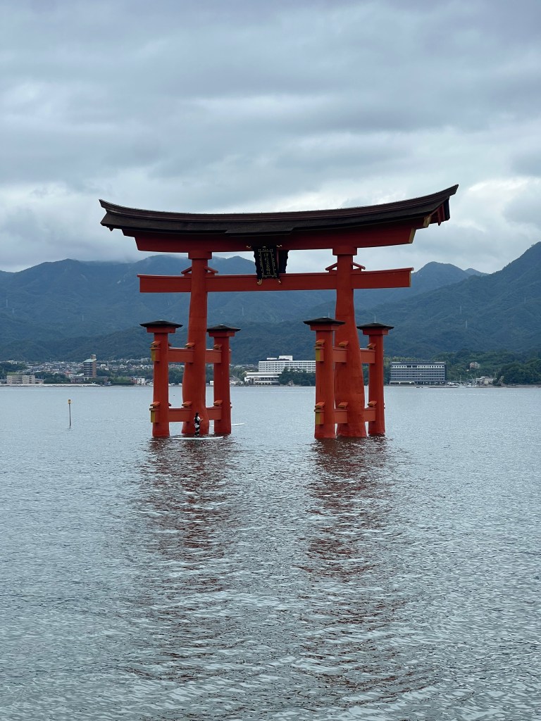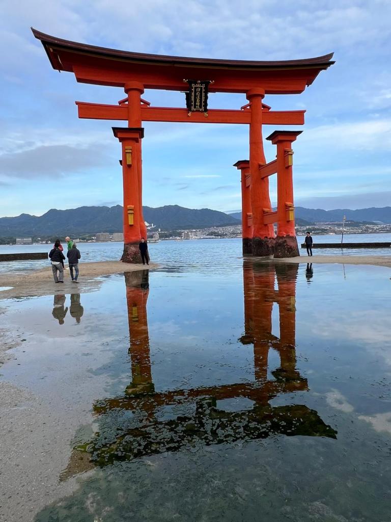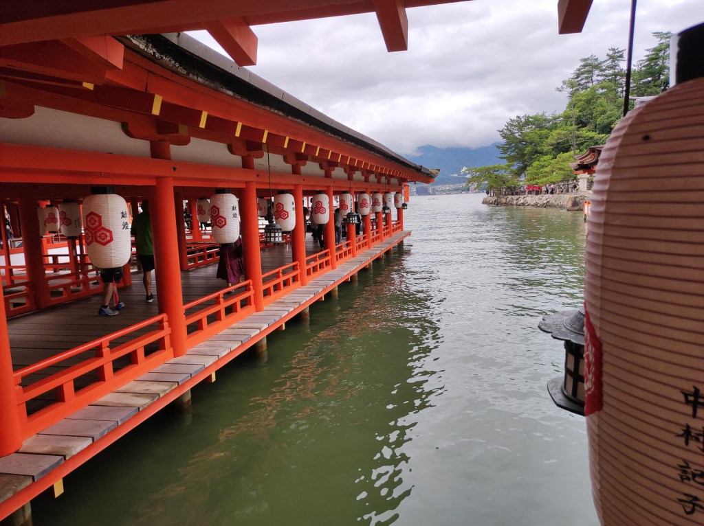 All’improvviso, il motore del traghetto ha cambiato tono, un rimbombo sordo che ha vibrato sotto i miei piedi proprio mentre la sagoma del santuario si faceva nitida, con le sue passerelle sospese che sembrano galleggiare sull’acqua come un tappeto di lacca rossa. Ho stretto la cinghia dello zaino, sentendo il cuore accelerare un po’.