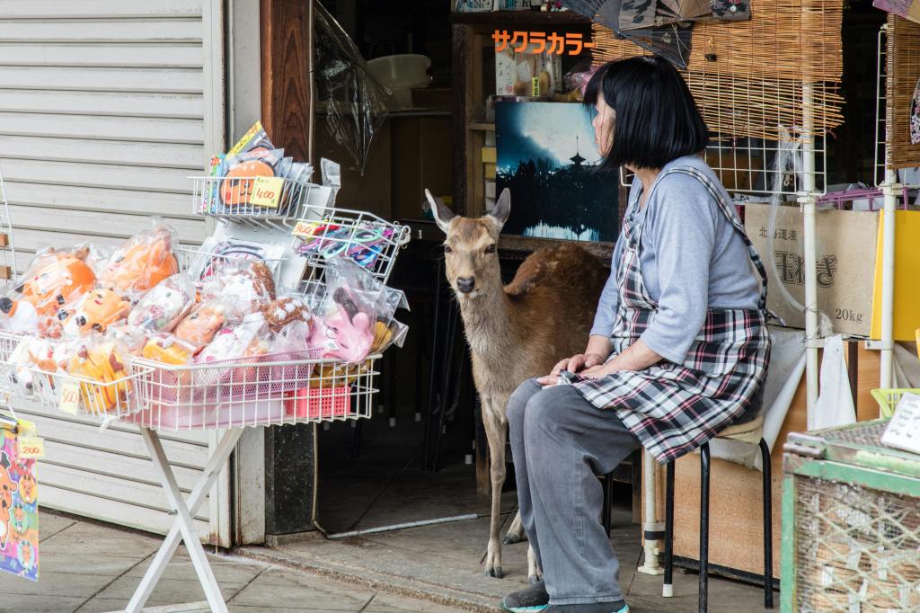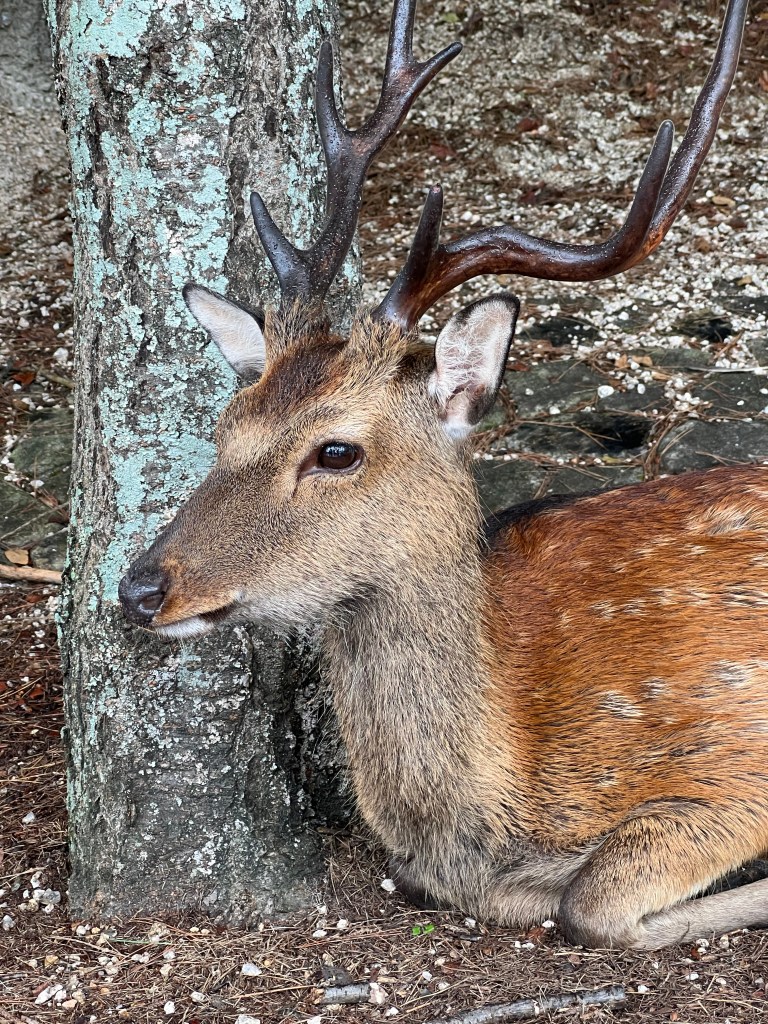 I cervi, simbolo dell’isola, passeggiavano liberi e tranquilli tra i visitatori, con quella naturalezza che solo gli animali sacri possono possedere. Si avvicinavano senza timore, come se fossero custodi di un segreto antico e prezioso. I loro grandi occhi scuri sembravano scrutarmi, quasi volessero sussurrarmi antiche storie di dei e spiriti che abitavano l’isola.