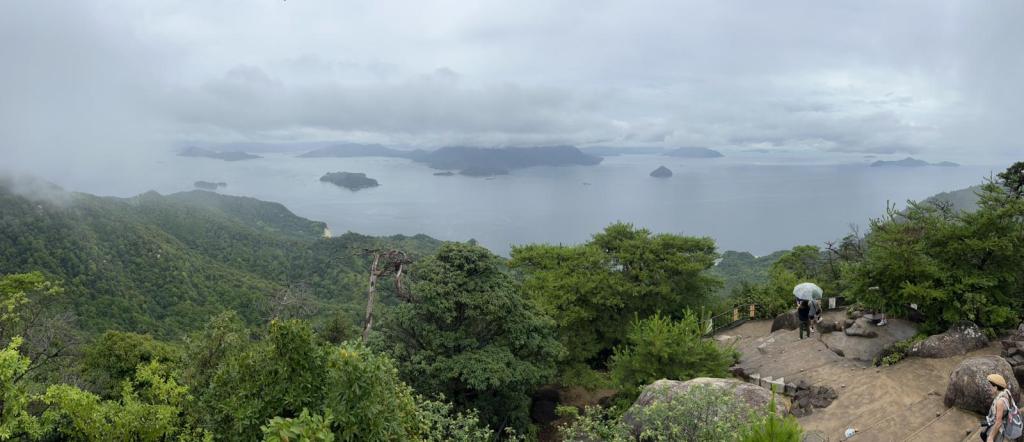 Arrivato sulla cima, il panorama che si apriva davanti ai miei occhi era un incantesimo. Il mare si estendeva all’infinito, e le piccole isole vicine apparivano come perle sparse su un drappo di seta blu. Sentii una profonda connessione con la natura e con l’antico spirito di Miyajima. In quel momento, tutto il mondo sembrava quieto e io ero parte di quel silenzio.